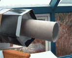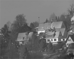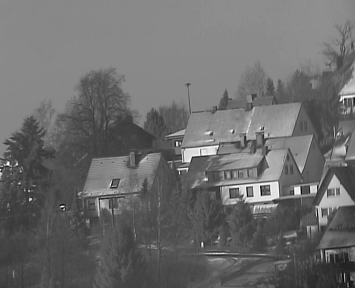 Mein Dobson-Teleskop war nach ca. 9 Std. Bauzeit soweit fertiggestellt, daß es sein First Light in Gestalt einer Tagbeobachtung des Nachbarortes erhalten konnte. Die nebenstehenden Bilder entstanden später und zeigen einige Objekte in ca. 4-5 km Entfernung.