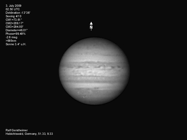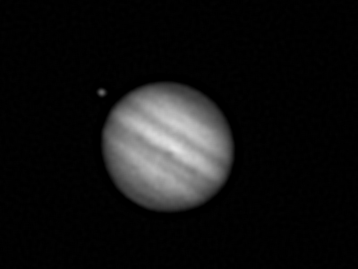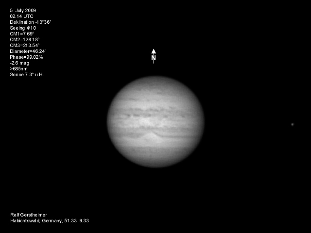 Links daneben zeitgleich simulierte Darstellung von Ganymed aus Guide8: Ganz links original, daneben überkontrastiert und unscharf gezeichnet . |