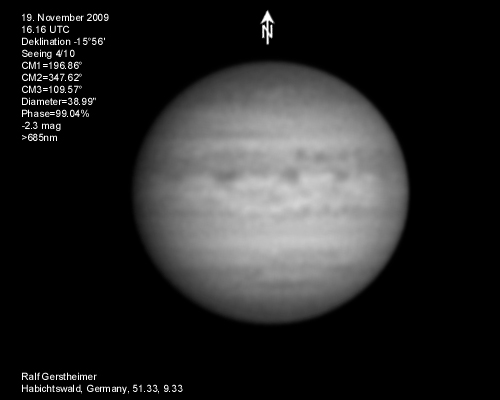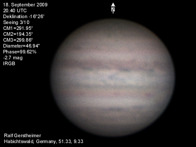 Zu Beginn mäßiges Seeing, später dann immer wieder ruhige Phasen von einigen Sekunden Dauer. Ab 0:30 wurde das Seeing