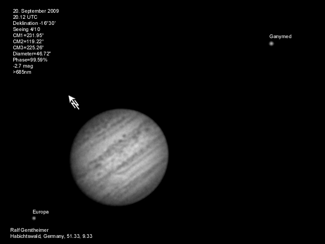 Schattendurchgang Europas auf Ganymed am 18.3.2003, 20:42 UT- 20:52 UT
