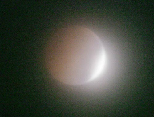 Bis unmittelbar vor der Totalität war der Himmel bedeckt. Gegen 23.30 Uhr zeigten sich dann erste Wolkenlücken