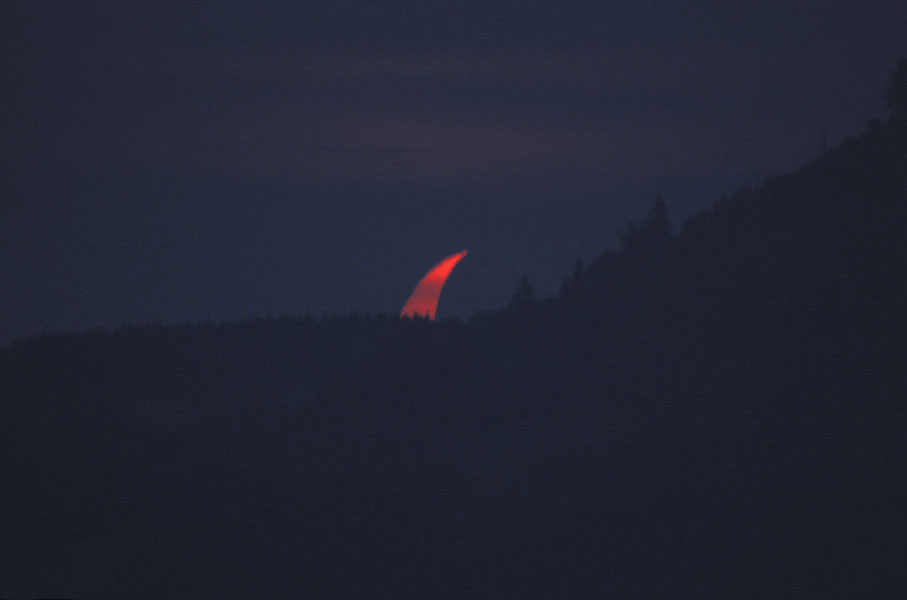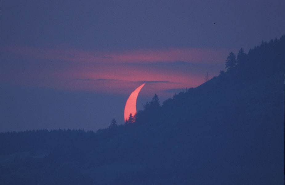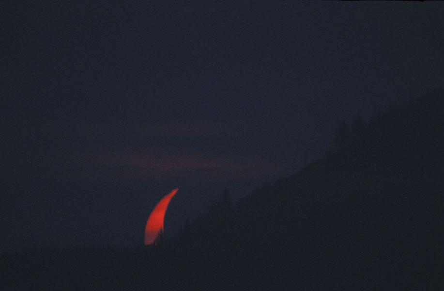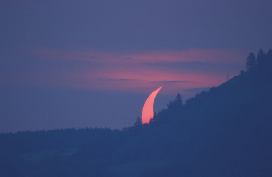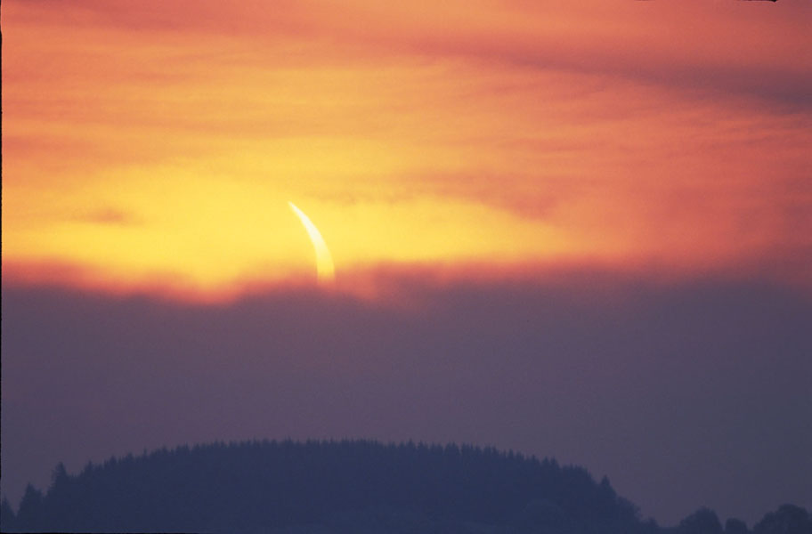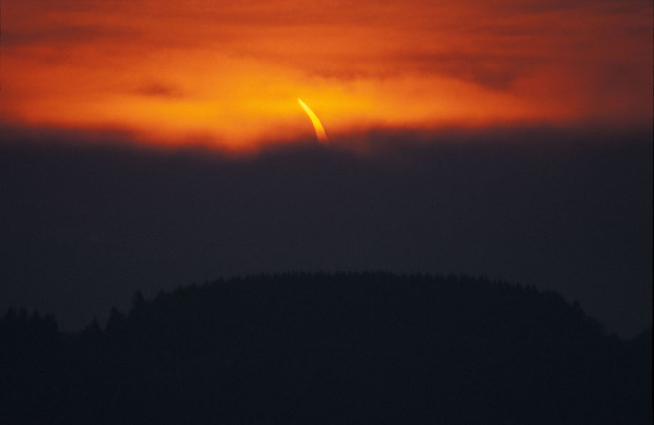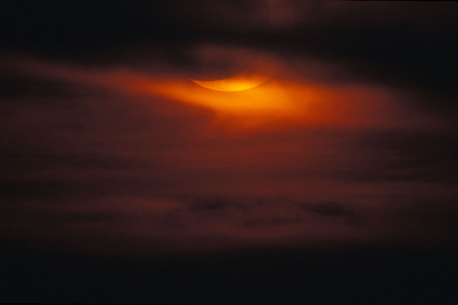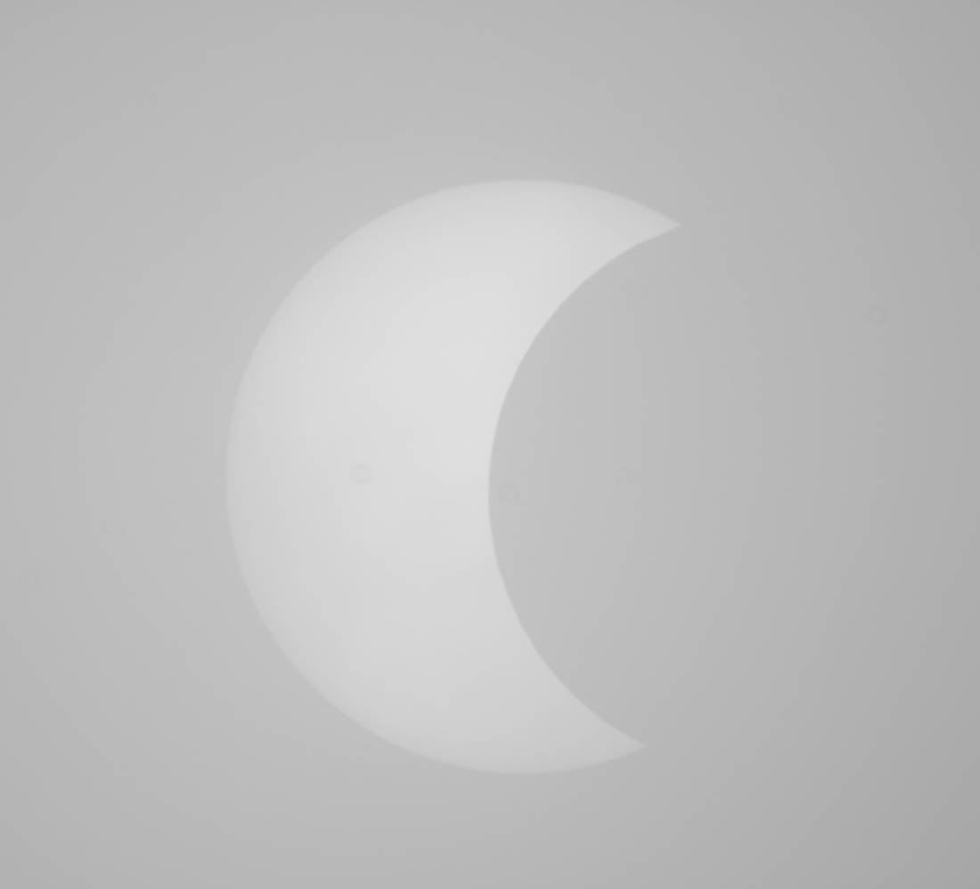 Die Sonnenfinsternis konnte bei dichtem Nebel ohne Filter aufgenommen werden