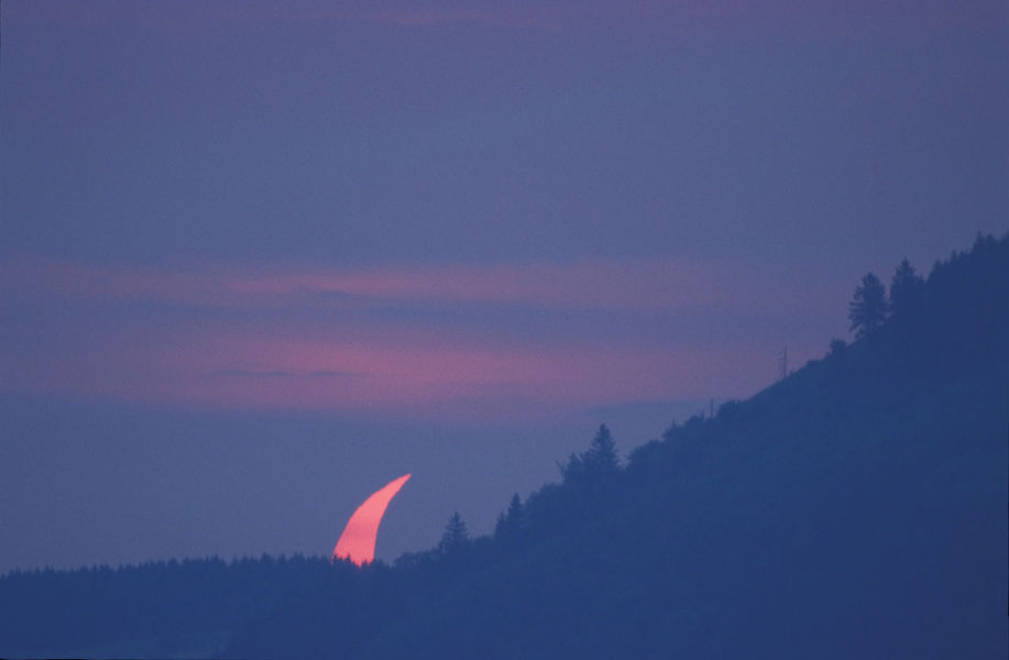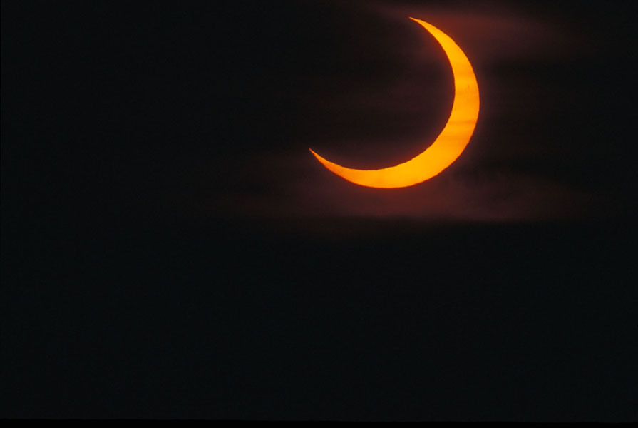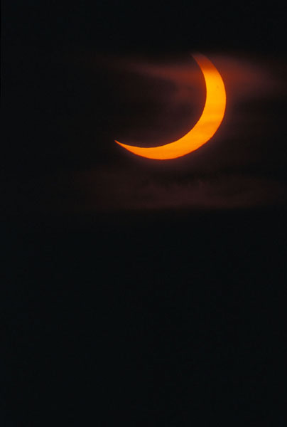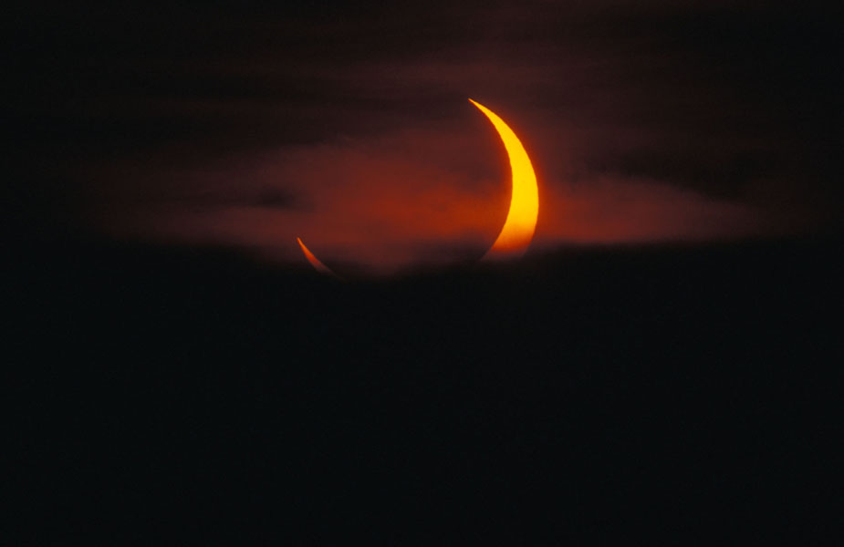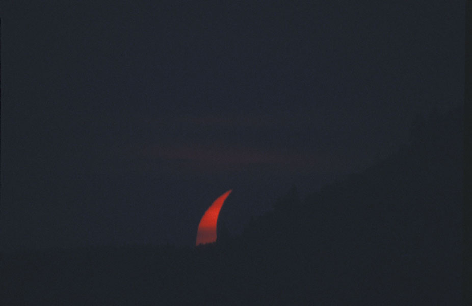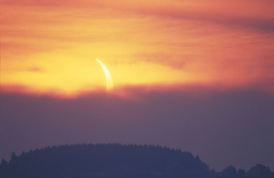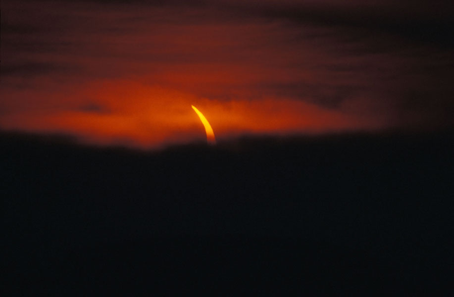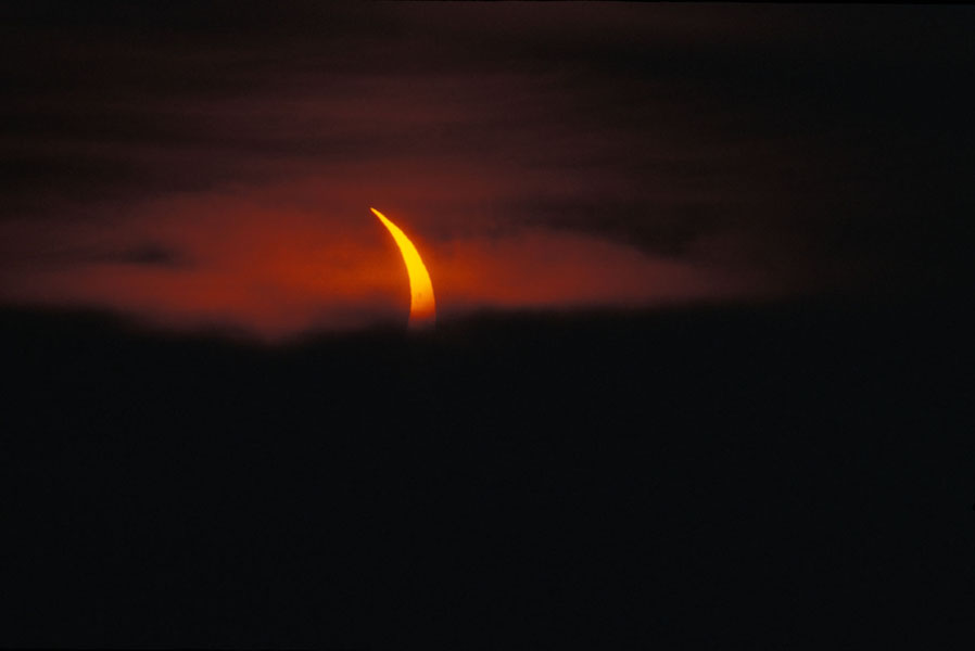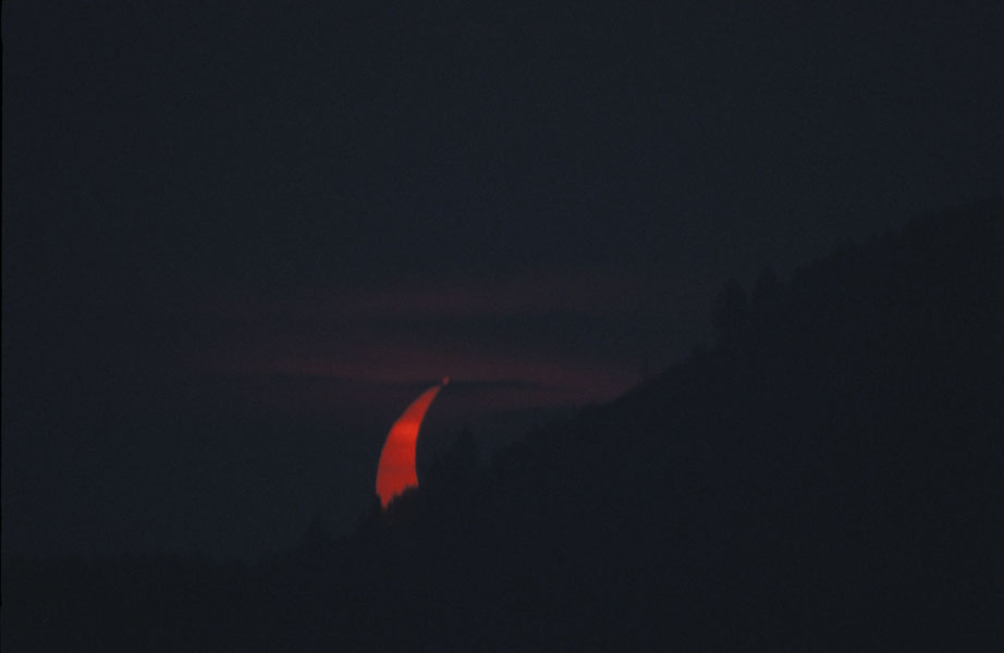 Die Sonnenfinsternis konnte bei dichtem Nebel ohne Filter aufgenommen werden